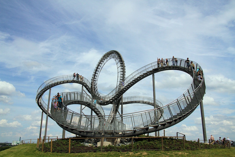 Heute haben wir kurz Tiger & Turtle in Duisburg besucht. Von der Skulptur, die sich auf der Heinrich-Hildebrand-Höhe befindet, hat man einen schönen Blick auf die umgebende Schwerindustrie und auch auf andere Landmarken, wie das “Geleucht”. Den Looping schafft man jedoch nicht…