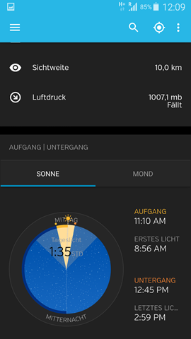 Der Tag ist nur 1,5 Stunden lang. Die Sonne schafft es die nächsten 8 Tage nicht über den Horizont. Für den 21.1.2016 wird sie zurück erwartet. Ganz genau lässt es sich nicht vorhersagen, da die kaum berechenbare Refraktion die Sonne scheinbar anheben kann.