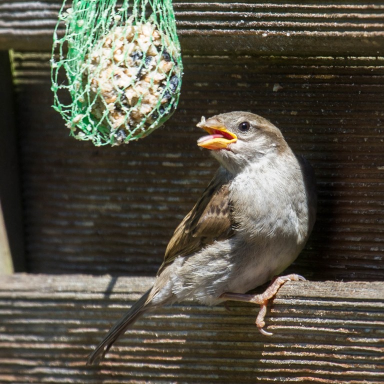 Vögel am Meisenknödel
