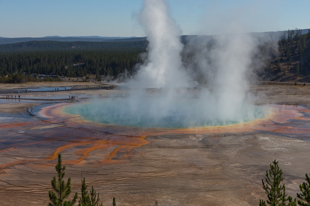 Reise Yellowstone Geschrieben von admin am 19. August 201719. August 2017. Die Grand Prismatic Spring vom Aussichtspunkt. Kalksinterterassen erinnern an Pamukkale. Tapfere Pflanzen wachsen in den Ablagerungen. Andere schaffen es nicht.