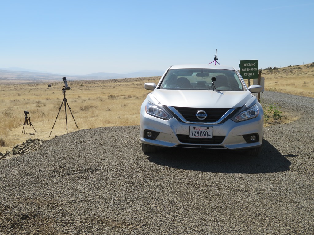 Von McCall aus sind wir 1,5 Stunden lang in die Finsterniszone gefahren. Aufgestellt haben wir uns auf einer staubigen Dirtroad (Indian Valley Road bei Midvale Breite="44.450203" Länge="-116.428416" Höhe=1045m ).