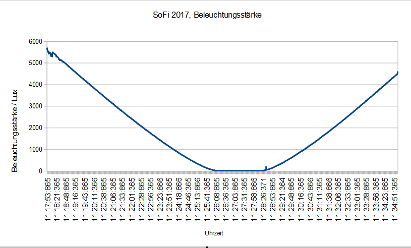 Helligkeitsverlauf der SoFi, aufgenommen mit dem Smartphone und der AndroSensor-App.