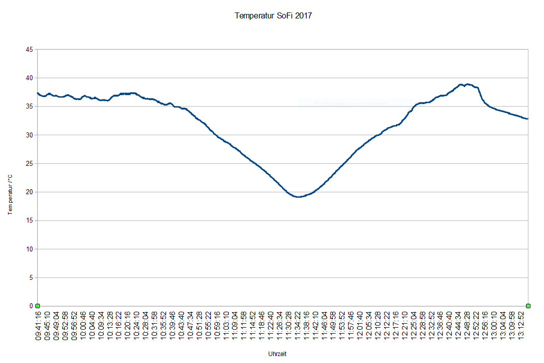 Temperaturverlauf der SoFi, aufgenommen mit einem Datenlogger.