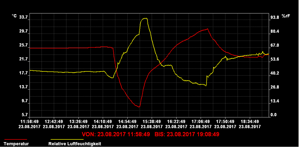 Fotografisch machte die Höhle nicht so viel her, daher hier der Temperaturverlauf. Es wurde bis zu 8.7°C kalt und die Luftfeuchtigkeit stiegt auf bis zu 95.3%.