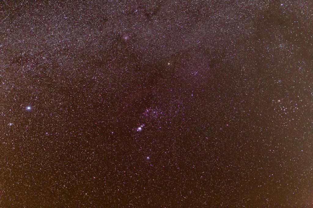 Sternbild Orion vom Mirador de las Mimbreras aufgenommen. Hier ist ist es schön dunkel. (Einzelaufnahme, 10s, Blende 1.4, ISO 12800).
