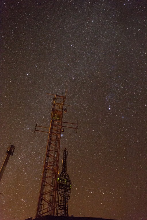 Mobildfunkmasten und Sternbild Orion vom Astronomischen Aussichtspunkt “Mirador del Molino” aufgenommen.