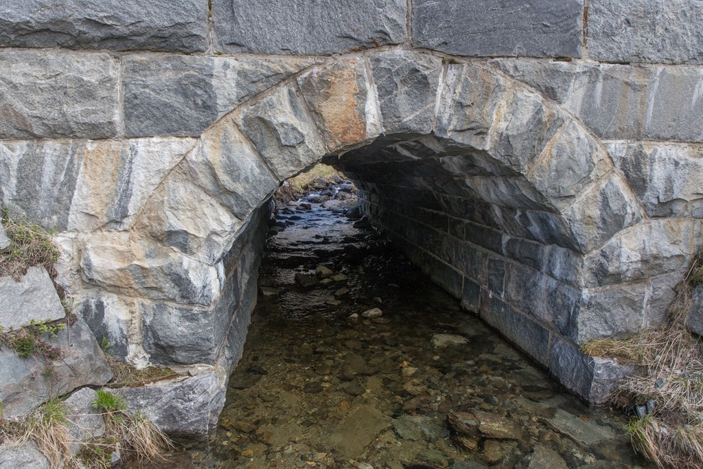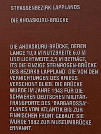 Unterwegs findet man eine historische SteinbogenbrĂĽcke, der man einen Parkplatz, eine Holztreppe und ein groĂźen Schild spendiert hat.