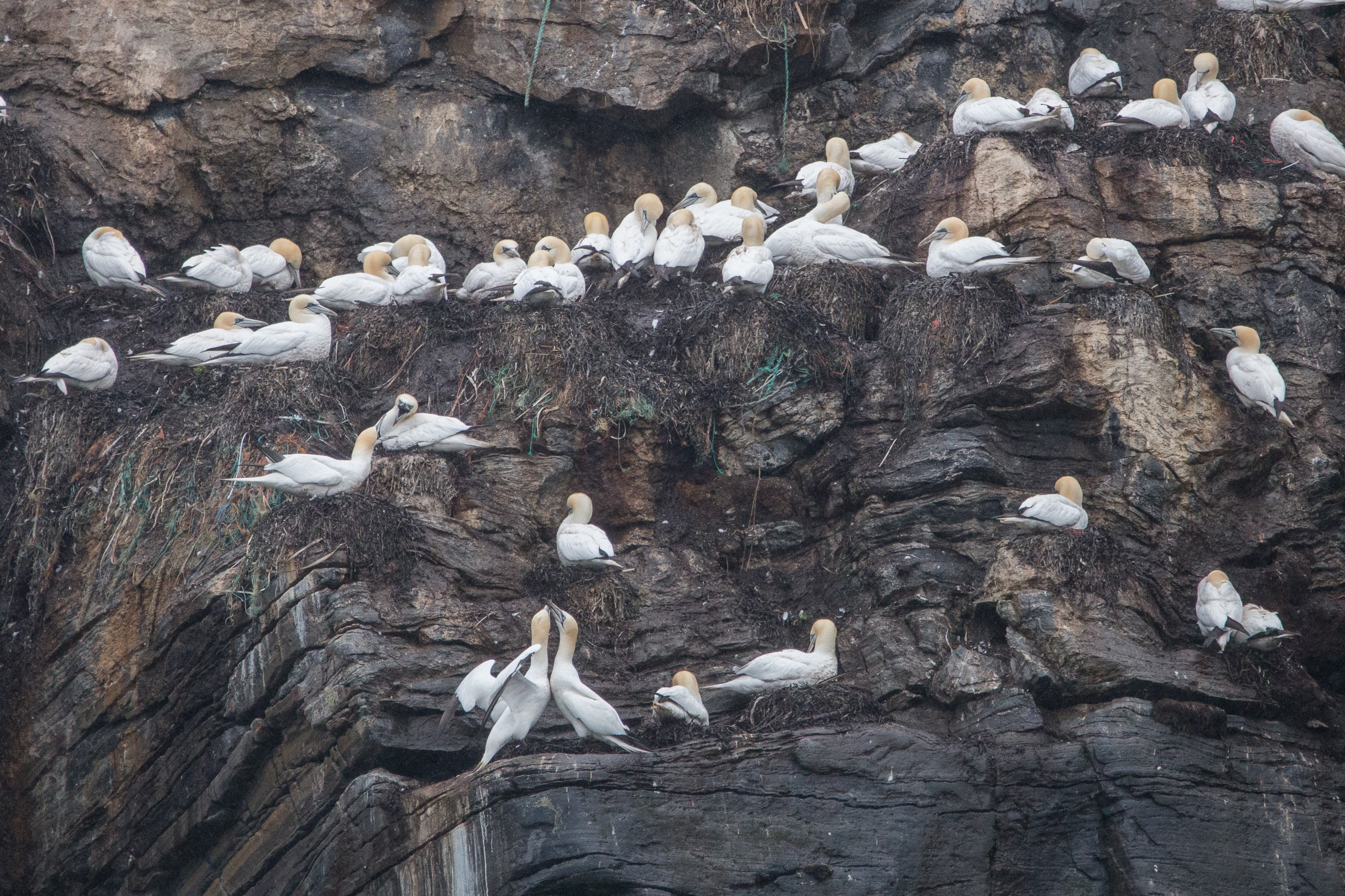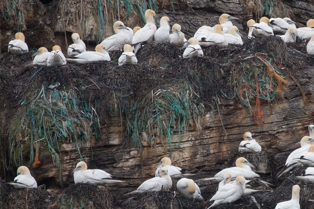 Anscheinend verwenden die Basstölpel gerne Fischernetze um Ihre Nester zu bauen.