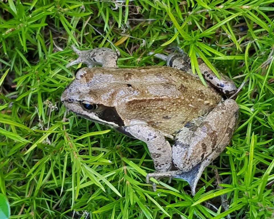 Natur Grasfrosch im Garten Geschrieben von admin am 18. Juli 2018. Der Grasfrosch versteckt sich unter dem Teppich-Phlox bis er vom Wasserstrahl gestört wird.