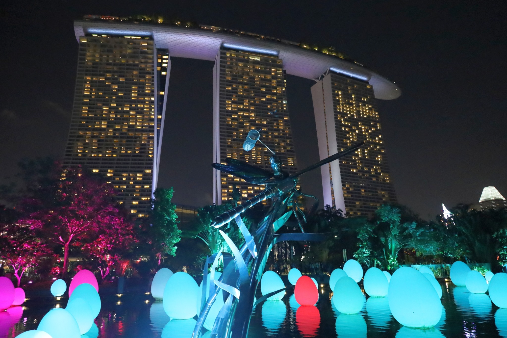 Reise, Singapur_Japan_2019_2020 23.12.2019 SIngapur, Gardens by the Bay Geschrieben von admin am 23. Dezember 20193. Januar 2020. Blick aus dem Hotelzimmer in Richtung der Insel Sentosa mit dem VergnĂĽgungspark. Das Hotel Marina Bay Sands bei Nacht. Das Hotel mit einer Lichtinstallation. Zu Weihnachten gibt es eine spezielle Lichtshow mit Weihnachtsmusik.