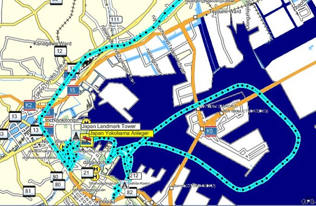 Heute sind wir ins etwa 30km entfernte Yokohama gefahren. Dort gab es eine Schifffahrt im Hafengebiet.