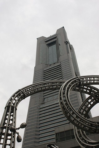 Nach dem Mittagsessen im Chinesenviertel ging es dann per Schiff weiter zum Yokohama Landmark Tower, dem höchsten Gebäude in Japan. Im 69. Stockwerk gibt es eine Aussichtsplattform. Der Weg dorthin ist sehr schnell. Der Aufzug fährt mit maximal 750 Metern pro Minute und ist Japans schnellster. Bei dunstigem Wetter konnte man bis nach Tokyo sehen und dort den Tokyo Tower erkennen. Fuji versteckte sich im Dunst.
