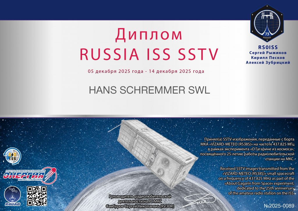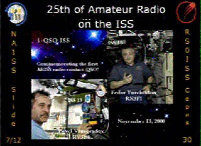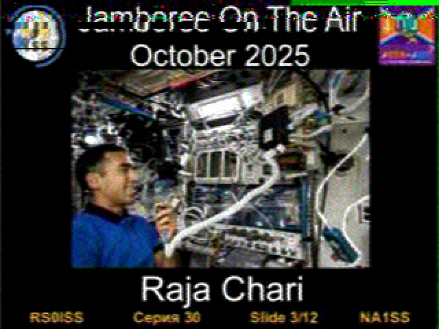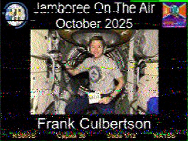 Im November 2025 wurden SSTV Standbilder von der ISS im Rahmen der Aktion „25 Jahre Amateurfunk auf der ISS“ gesendet. Hier die Bilder, die ich aufgefangen habe. Diesmal konnte ich nur 2 Bilder bei einem Überflug in nur 14°Höhe auffangen. Daher sind die Bilder etwas verrauscht. Nachfolgend wurden von der ISS keine Bilder mehr gesendet, da es technische Probleme mit dem Radioequipment auf der ISS gab.
