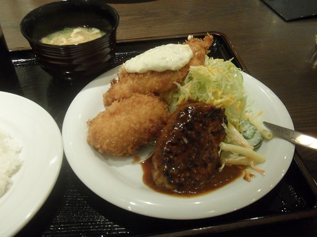 GPS | Frikadelle, Fisch, Reis, Salat, Kartoffelbällchen und Mizusuppe |