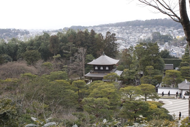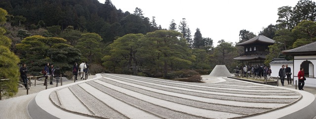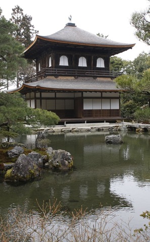 Der Ginkaku-ji Tempel mit dem silbernen Pavilion liegt in einem hübschen japanischen Garten. Es finden sich ein See, viele Bäume und auch ein Steingarten.