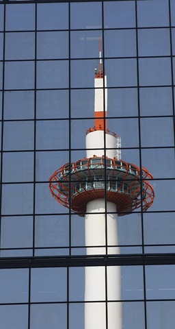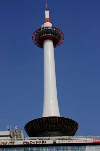Kyoto Tower ist das höchste Bauwerk in Kyoto. Er wurde 1964 fertig gestellt und ist 131 Meter hoch. In hundert Meter Höhe befindet sich eine Beobachtungsplattform. Hier finden sich in Meterabstand Feldstecher –viele davon mit kostenlosen Einblick.