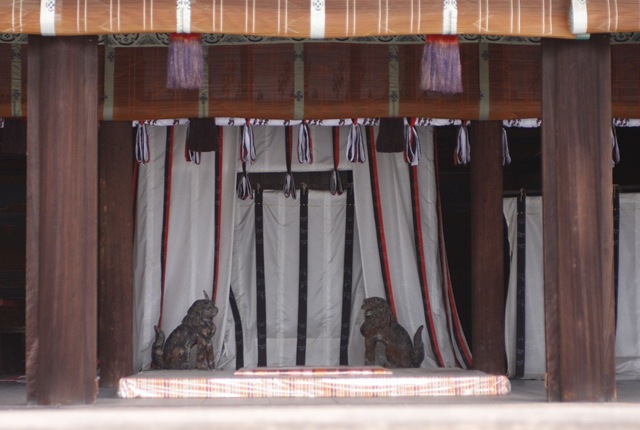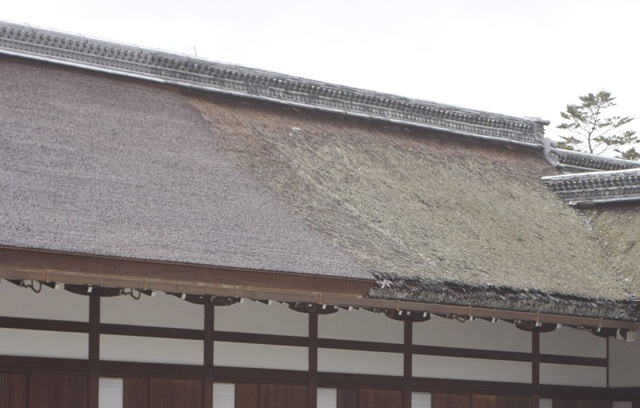 Die Dächer der Gebäude sind mit Zedernrinde belegt, die alle 30 Jahre erneuert werden müssen. Die Erneuerung aller Gebäude dauert 25 Jahre. Im Bild oben kann man sehen, wie das Dach nach und vor der Erneuerung aussieht.
