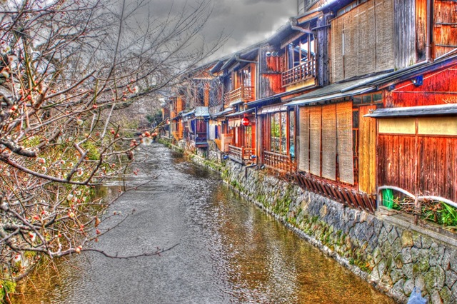 Kyotos Altstadt, das Gion-Viertel zeigt viele restaurierte alte Gebäude.