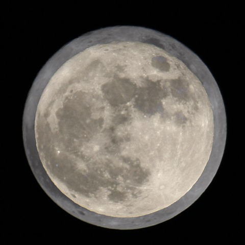 Der heutige Vollmond fand bei Erdnähe statt. Daher war der Mond scheinbar besonders groß zu sehen. Mit bloßem Auge erkennt man diesen Effekt kaum. Das Foto zeigt aber die verschiedenen scheinbaren Monddurchmesser. Der größere Mond wurde heute aufgenommen. Der kleinere Mond am 20.4.2008. An diesem Datum befand sich der Mond in Erdferne. Für beide Aufnahmen wurde die gleiche Kamera und die gleiche Optik verwendet. Laut Calsky ist der heutige Mond “Der 11. größte der letzten 1000 Jahre und für die nächsten 1000 Jahre”.
