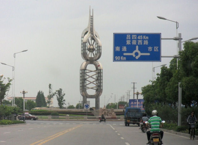 Shanghai nach Qidong im Norden des Jangtze dauert 3 Stunden. Eine neue BrĂĽcke ist jedoch im Bau, die die Fahrtzeit verkĂĽrzen soll.