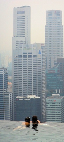 Schwimmen am Abgrund auf dem Hoteldach. Sieht gefährlicher aus, als es ist. Hinter dem “Abgrund” ist noch ein Balkon, erst dann geht es abwärts…