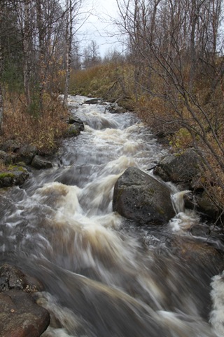 Blick durch die Leitungen zum Stationshuset und unserer Unterkunft. Nahe dem Hotel kommt auch einiges Wasser vom Berg, wie man hier sehen kann.