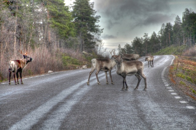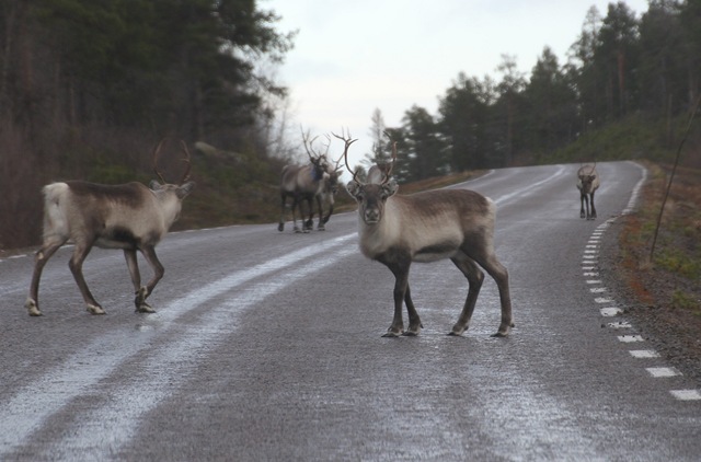 Hier trafen wir auf einige Rentiere, die uns den Weg versperrten.