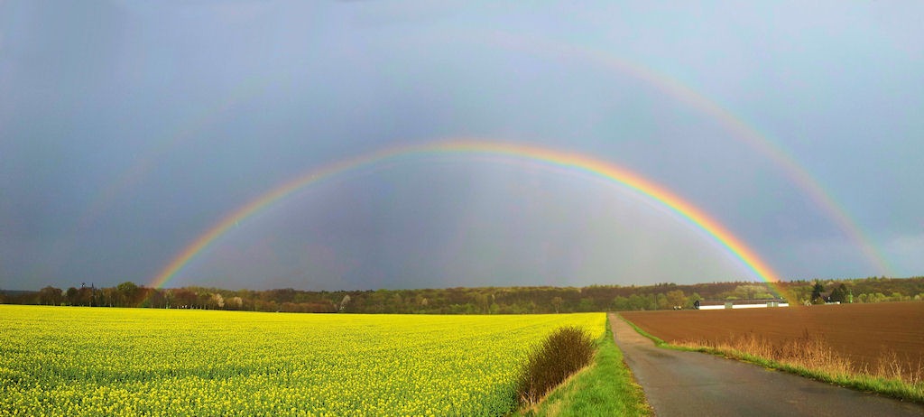 Atmosphärische Optik, Natur Doppelter Regenbogen Geschrieben von admin am 12. April 2012. Doppelter Regenbogen mit Interferenzbogen.