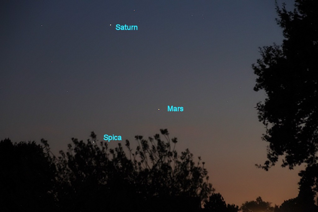 Astronomie Konjunktion Saturn-Mars-Spica Geschrieben von admin am 10. August 2012. Saturn, Mars und der Stern Spica bilden ein Dreieck am Abendhimmel. Spica ist der hellste Stern im Sternbild Jungfrau.