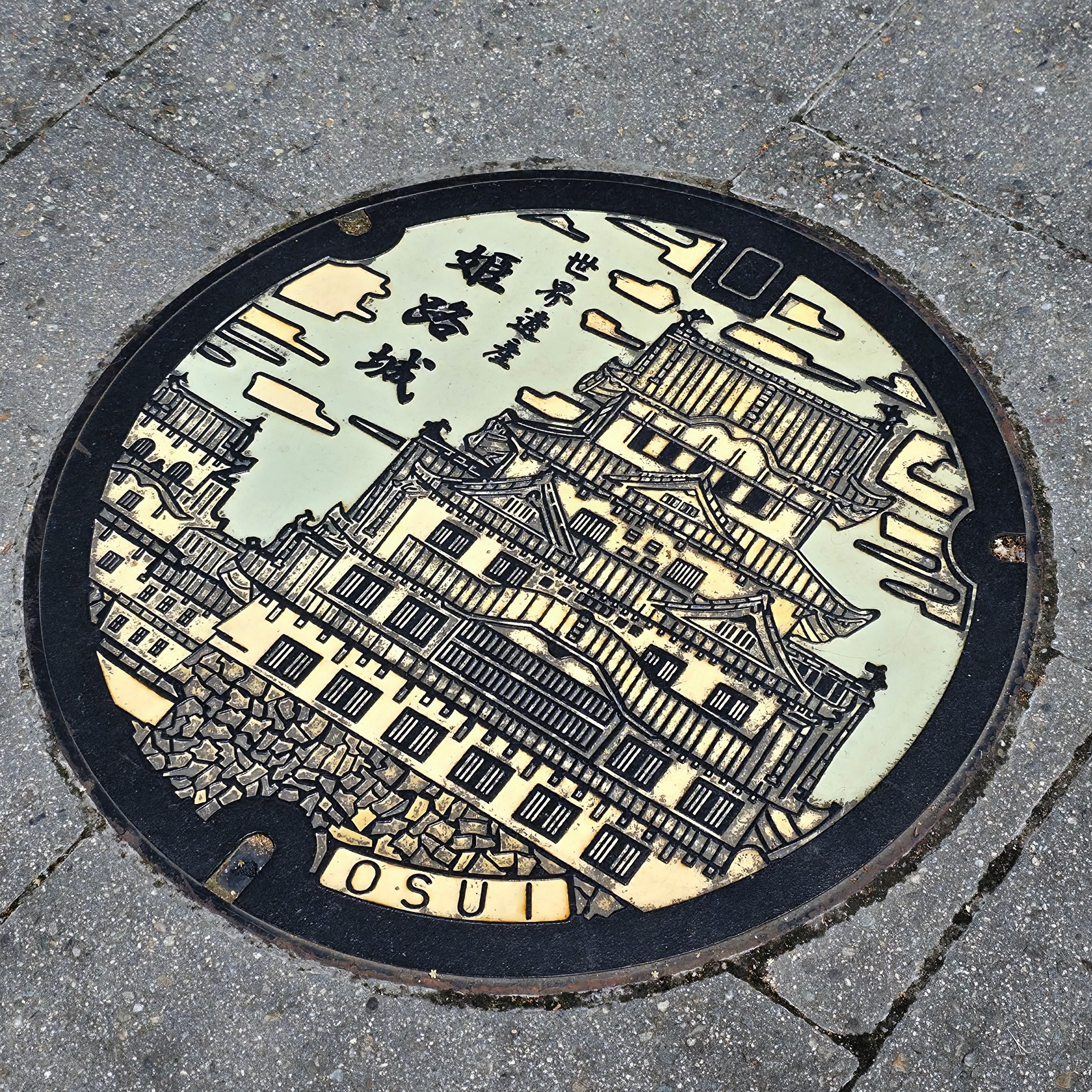 Himeji Castle in der FerneHimeji Castle Kanaldeckel 18 - Akashi-Kaikyo Brücke20 - Akashi Planetarium, Gigantor